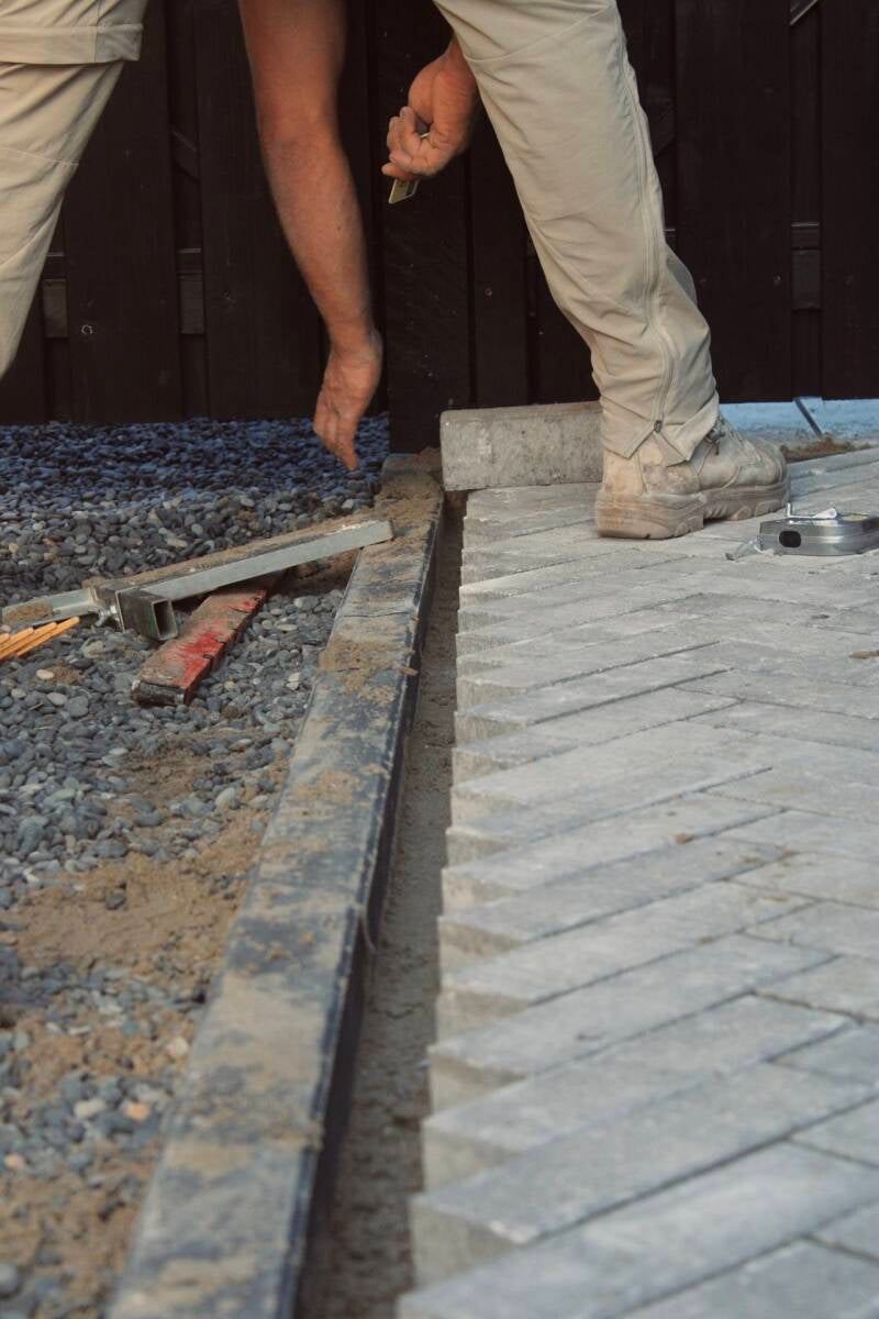 Eerst hadden we het plan om de stenen half/half te leggen maar op aanraden van Rick bleek visgraat steviger te zijn voor de oprit en het ziet er nog eens mooier uit ook!
